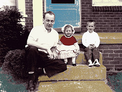 Today is my dad’s birthday. My dad grew up on a farm in the UP in a small town called Pelkie. He was the youngest of eight, the first one in his family to graduate from college. Back then MSU was called Michigan State College of Agriculture and Applied Science. He married my mom in 1956 and they started their family of four, that’s me and my brother on the front porch with my dad in 1961. We grew up in Detroit and Novi and I am blessed with childhood memories that include trips up my dad’s family farm, a magical place for a small child where we took sauna’s together, ate squeaky cheese my Finnish grandmother browned in a wood burning oven, and where the night sky was lit with so many stars it made me dizzy to look up at it. Many adults carry the angst of their childhoods around on their shoulders, it weighs them down, it leaves them longing for something different, something better. I don’t. Instead, my memories are mostly jewel toned and washed in honey. Maybe it’s just the passage of time blurring the past, but I don’t think so. Happy birthday dad.